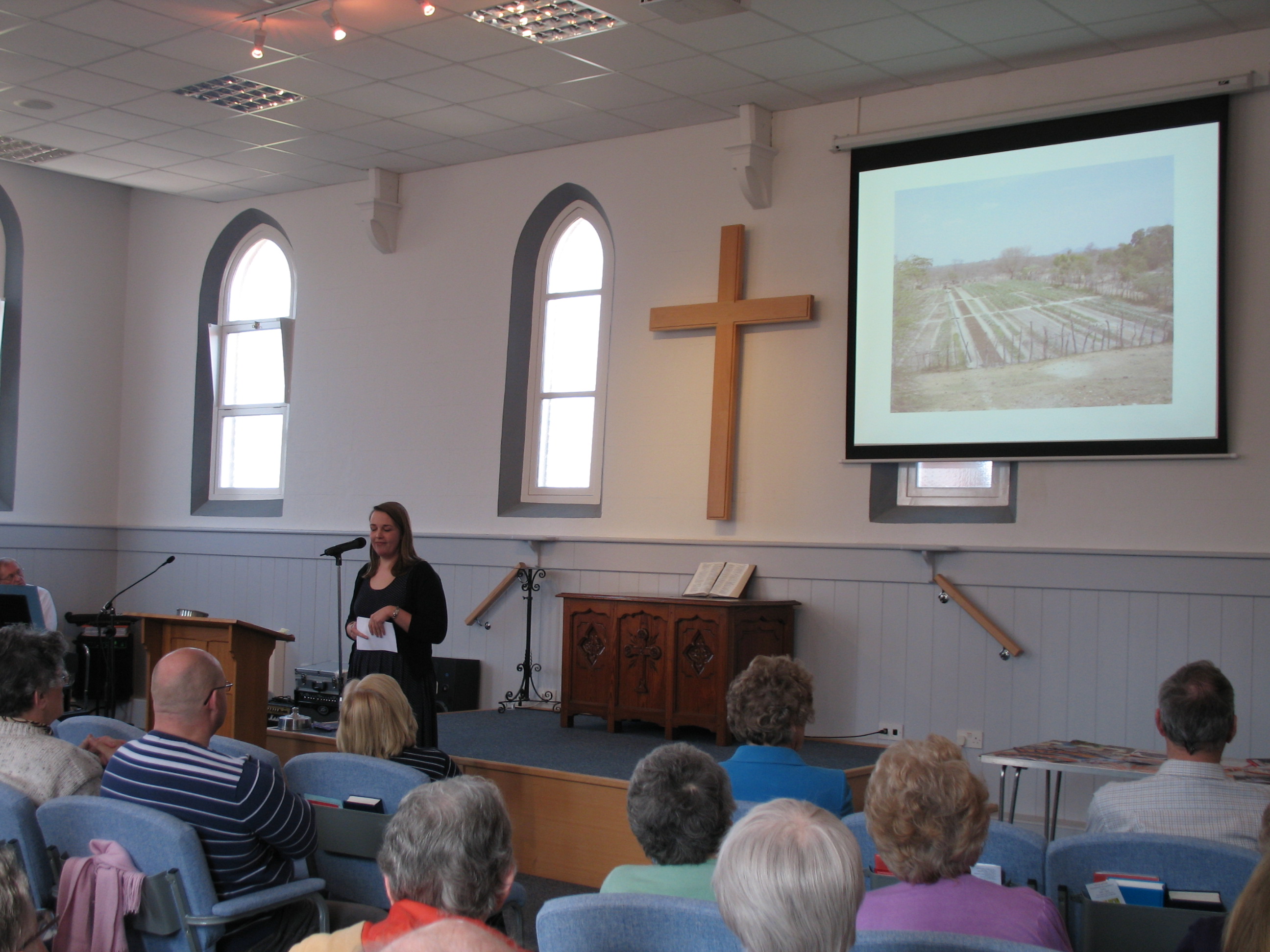 The chapel is equipped with a sound system consisting of loudspeakers which are embedded in the ceiling. We have a sound control system which enables us to regulate the sound from both microphones, (free standing and mobile), and from the audio-visual system operated in the chapel. A loop system is also in use in the chapel and operated from the control system. There is a keyboard in the chapel and on most occasions a small band (guitars, flute and occasionally viola) and the volume of sound is regulated by the band.